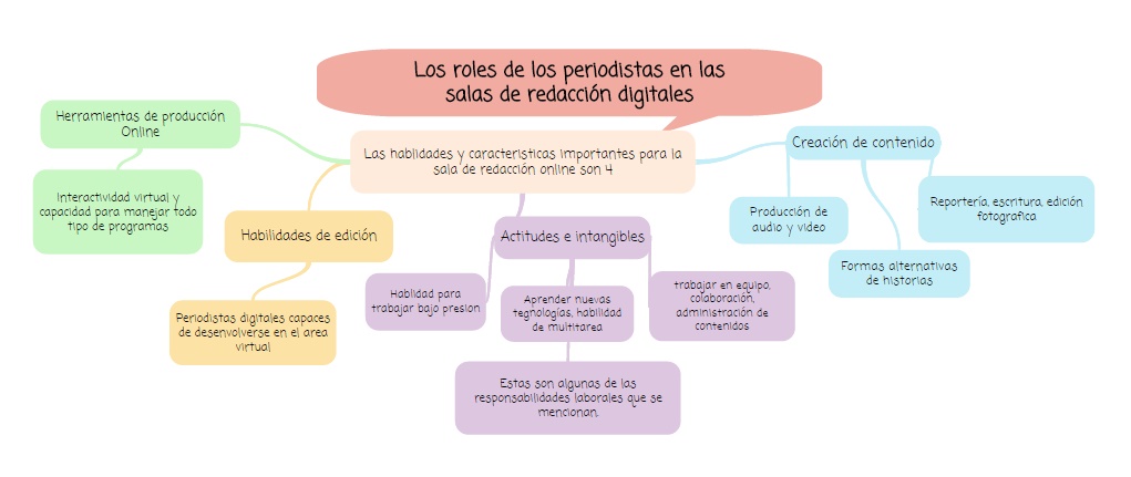 Mapa conceptual Los roles de los periodistas en las salas de redacción digitales.